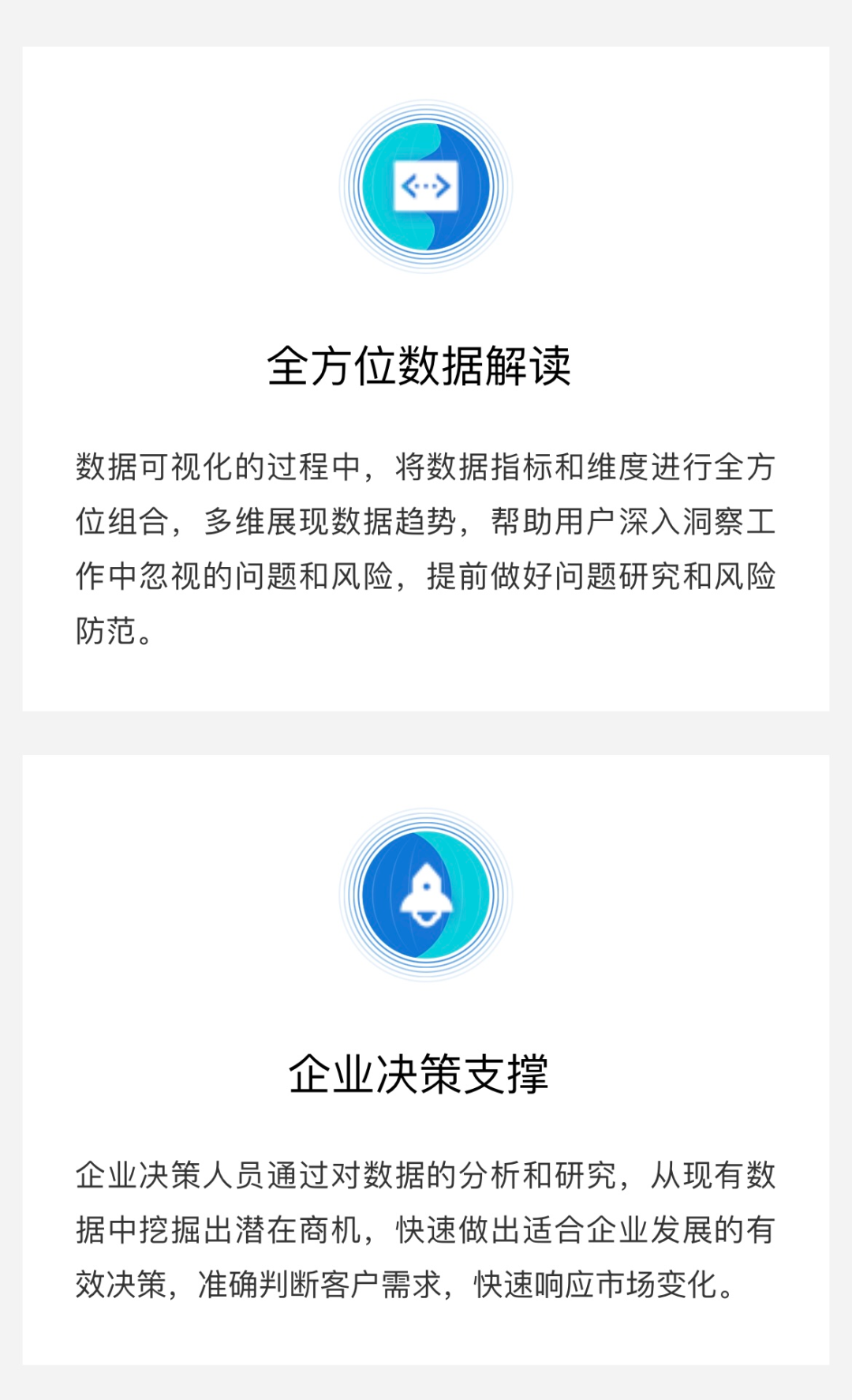 中软数据可视化大屏管理系统基于中国软件信创领域支撑平台,为用户提供安全可控、敏捷高效、所见即所得的自定义大屏设计工具,改变了传统的开发模式,以可视化拖拽方式,帮助用户快速构建全面、实时、多维的数据大屏,实现数据分析和展示,促进数据传播和应用,推动数据综合治理,提升数据资产价值。