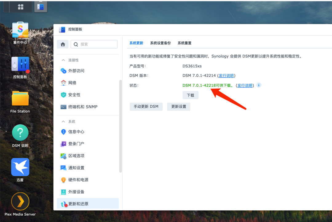 但看到有新DSM版本可以进行更新 DSM7.0.1-42218(旧版本DSM7.0.1-42214为RC版本) 然后未加思考就直接下载升级了