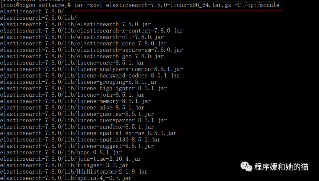 tar -zxvf elasticsearch-7.8.0-linux-x86_64.tar.gz -C /opt/module