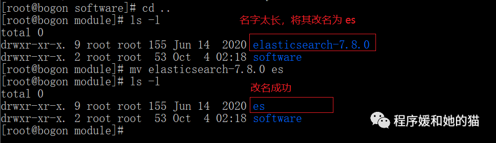 # 改名,elasticsearch-7.8.0 这个文件名太长了,将其修改为 es