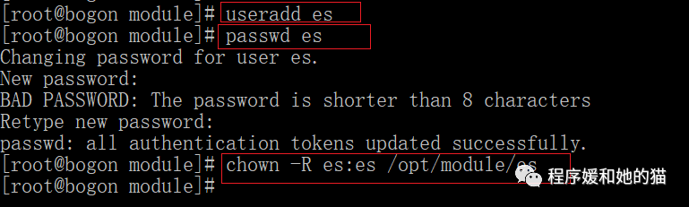 # 切换回 root 用户,执行 chown -R es:es /opt/module/es 这句话。