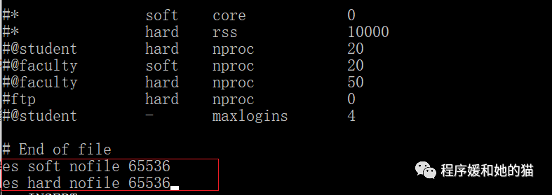1、修改 etc/security/limits.conf,在文件末尾增加如下内容: