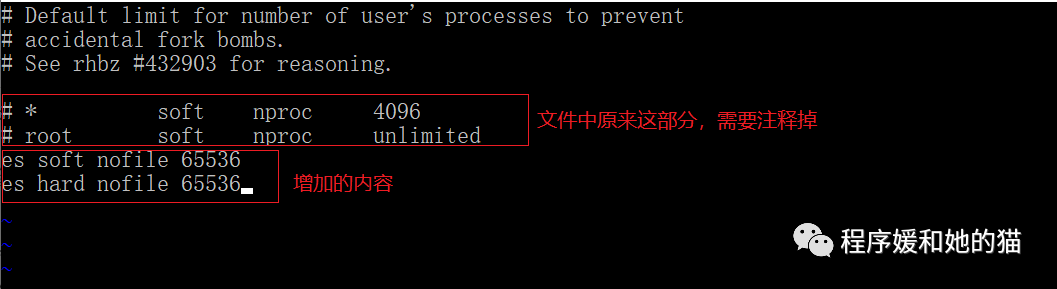 2、修改 etc/security/limits.d/20-nproc.conf,在文件末尾增加如下内容: