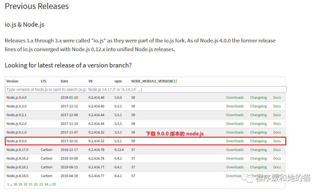 node.js 官方网站下载:https://nodejs.org/en/download/。默认下载最新版本的 node.js。本机之前安装过 10.16.3 版本的 node.js,但是运行 npn install 报错,去网上搜了一些博客,发现是 node.js 版本太高了,所以我这里重新安装 9.0.0 版本的node.js。