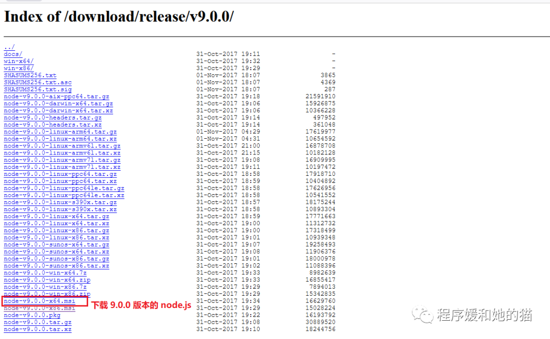 下载 9.0.0 版本的node.js,过程见图26、27、28,下载完成,安装包见图29。