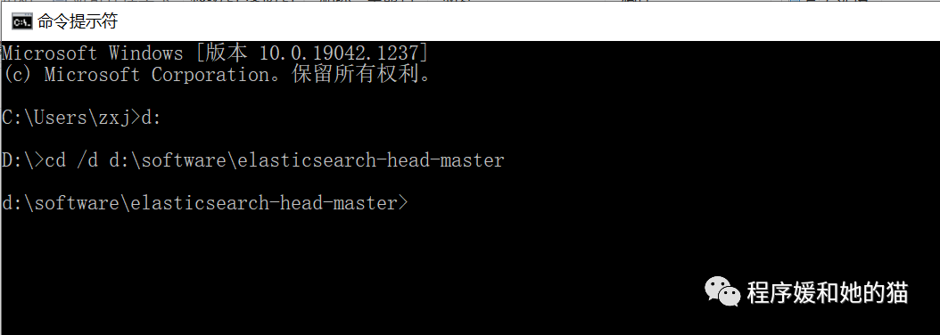 (2)使用 cmd 进入 elasticsearch-head 的文件夹,D:\software\elasticsearch-head-master。