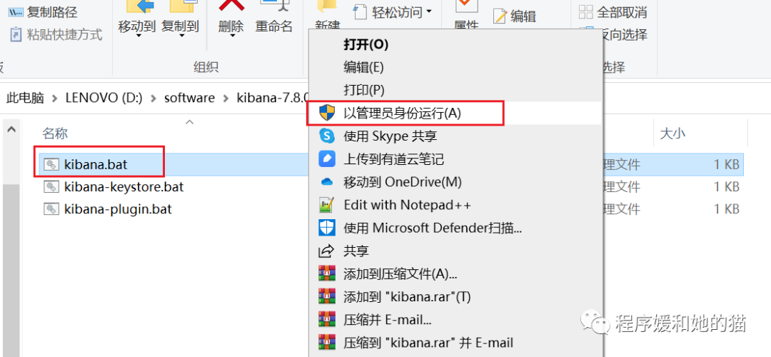 怀疑可能是权限不够,不再使用鼠标双击 kibana.bat 的方式启动 kiabana,改为使用管理员身份运行 kibana.bat,见图51,发现闪退的问题解决了。