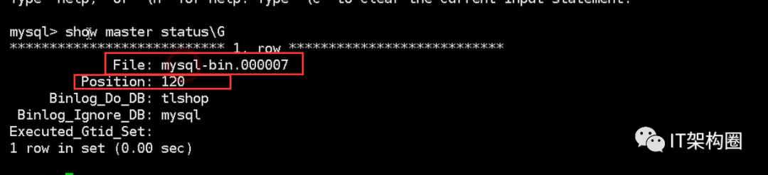 master_log_file='(输入1中show master status里面的 File)', master_log_pos=‘(输入1中show master status里面的 Position)’;