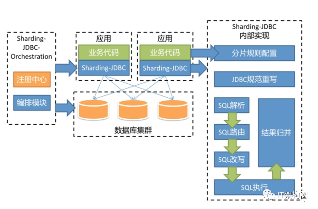 Sharding-JDBC 是一个开源的分布式数据库中间件,它无需额外部署和依赖,完全兼容 JDBC和各种 ORM 框架。Sharding-JDBC 作为面向开发的微服务云原生基础类库,完整的实现了分库分表、读写分离和分布式主键功能,并初步实现了柔性事务。之前有专门的文章『互联网架构』(65)