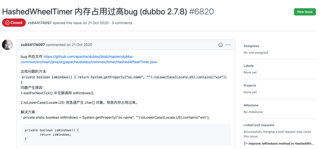 拿这个日志去 dubbo 的 github 仓库搜了一下,找到了如下这个 issue: