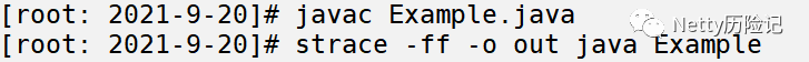 我们是使用strace -ff -o out java Example命令运行的程序,因此它会打印系统调用相关的信息.