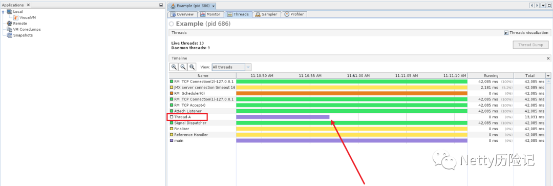 观察下Thread-A线程退出之后,对应的内核线程是否也退出了.