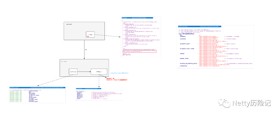 包括你看到的JDK层面的Thread的线程状态,和JVM中的线程状态,以及内核的线程状态,都是不完全一样的.