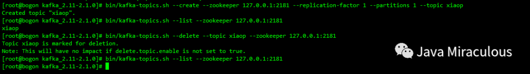 bin/kafka-topics.sh --delete --topic xiaop --zookeeper 127.0.0.1:2181