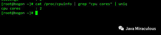 cat proc/cpuinfo | grep "cpu cores" | uniq