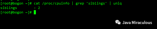 cat /proc/cpuinfo | grep 'siblings' | uniq