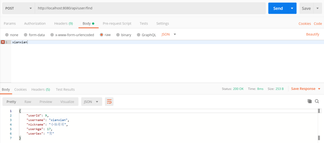 重新运行,使用 Postname GET 方式访问 http://localhost:8080/api/user/list ,可以看到返回数据库表中所有的数据。