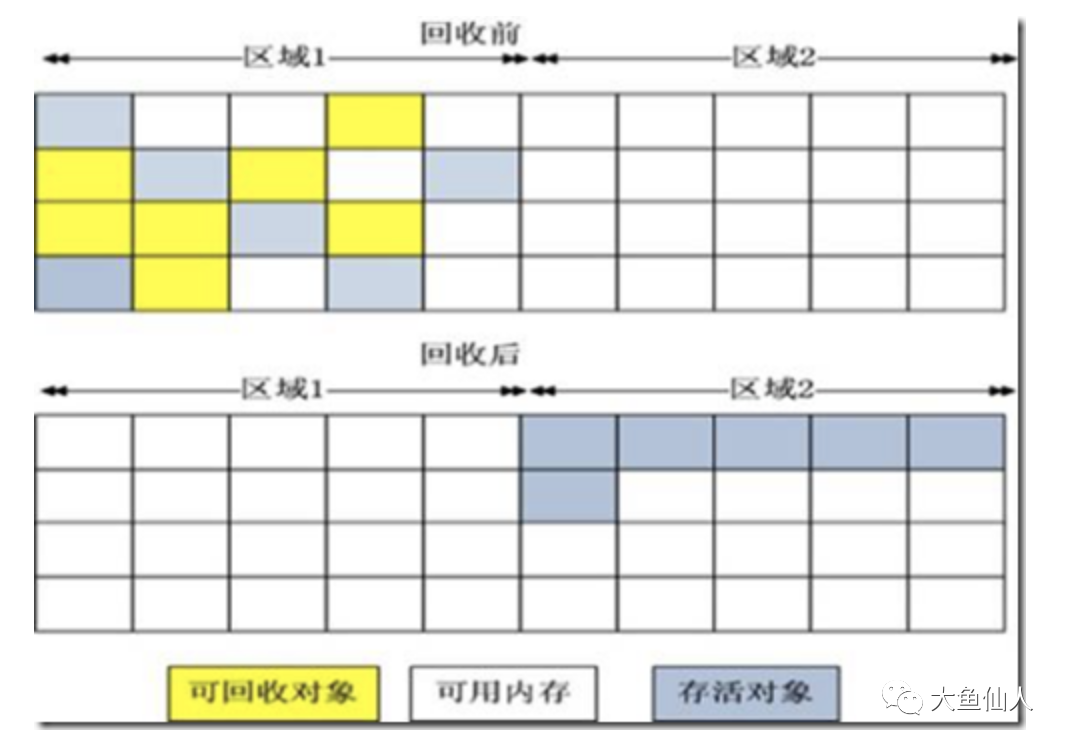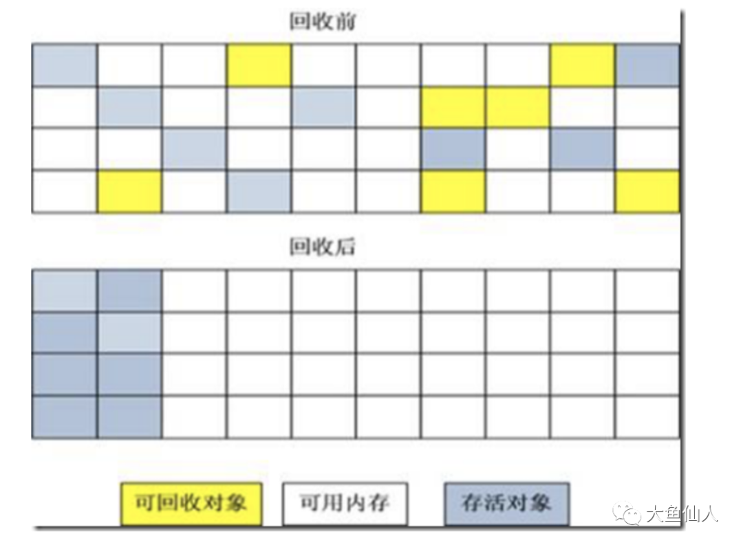 等下,大鱼,我记得标记-清楚算法你上面说了会有产生大量空间碎片的缺点啊,这样的话,不利于接下来给大对象分配,可能出现很多不连续的小空间,这咋办