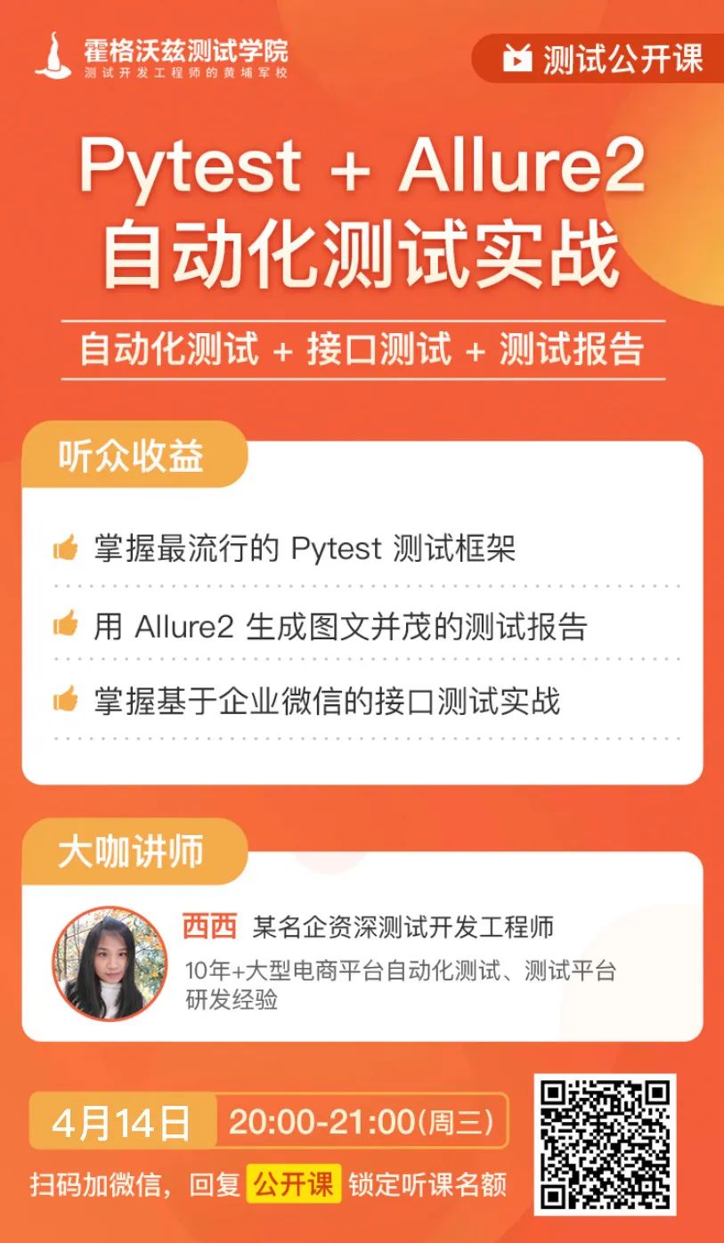 为帮助同学快速掌握测试开发实战技能,霍格沃兹测试学院以企业微信为例,特别策划了《如何做好自动化测试并生成图文并茂的测试报告》公开课。