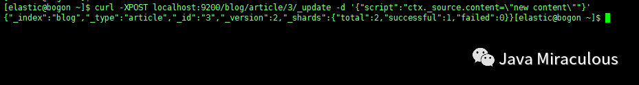 curl -XPOST localhost:9200/blog/article/3/_update -d '{"script":"ctx._source.content=\"new content\""}'