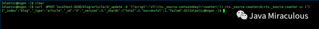 curl -XPOST localhost:9200/blog/article/3/_update -d '{"script":"ctx._source.counter += 1"}'
