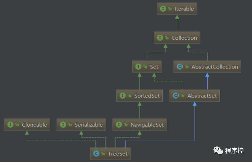 public class TreeSet<E> extends AbstractSet<E>implements NavigableSet<E>, Cloneable, java.io.Serializable { }