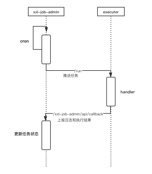 Executor会根据executorHandler找到对应的handler,执行完之后,又会调用xxl-job-admin的/xxl-job-admin/api/callback回报任务的执行结果。从上面的描述我们可以知道,xxl-job-admin和excutor都必须暴露出api服务(都是HTTP接口)。
