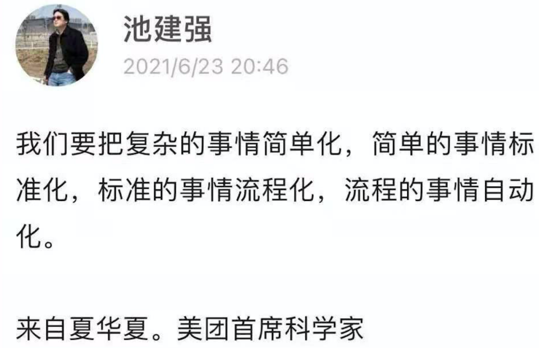 前两天在极客时间池大那里看到了一段话,原话出自美团首席科学家夏华夏老师,具体内容我贴到了下面。