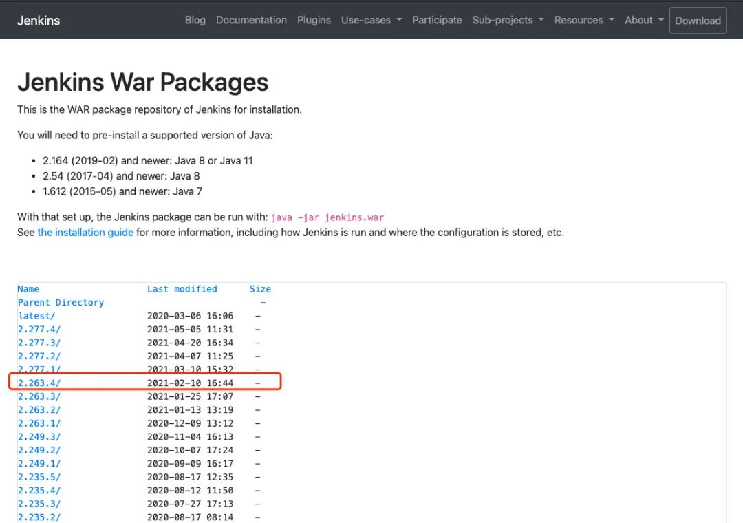 jenkins$ wget https://get.jenkins.io/war-stable/2.263.4/jenkins.war