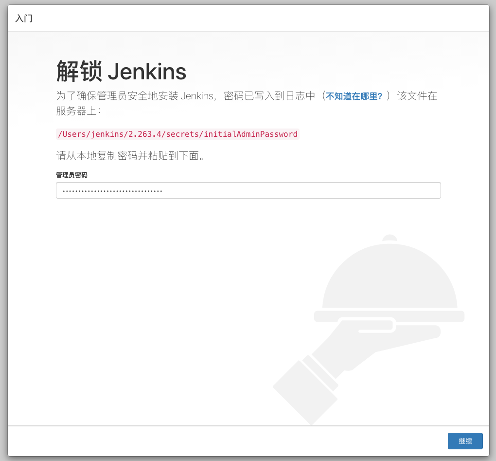 最后由于我们一直使用的是 jenkins 安装时自动设定的密码,这个密码在上面的安装日志中有输出。
