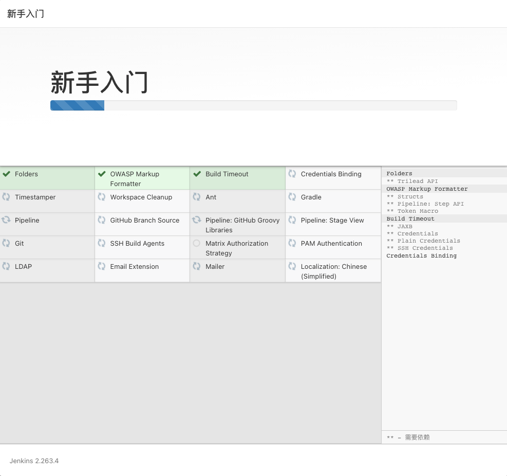 首次访问即可看到 jenkins 的入门指引,接下来你会依次看到下面的界面。