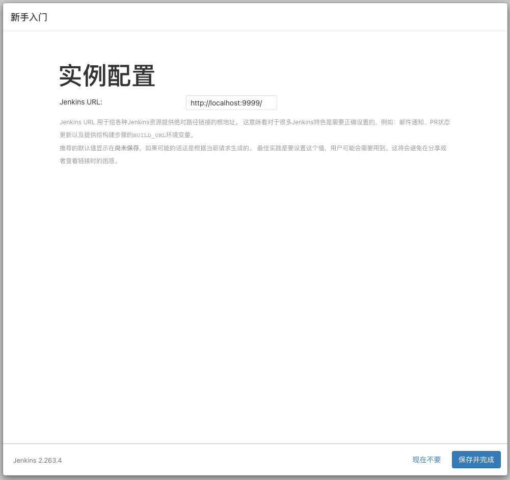 jenkins 启动完成之后,我们访问 http://localhost:{port}(我这里的端口是 9999)即可进入 jenkins 的页面。
