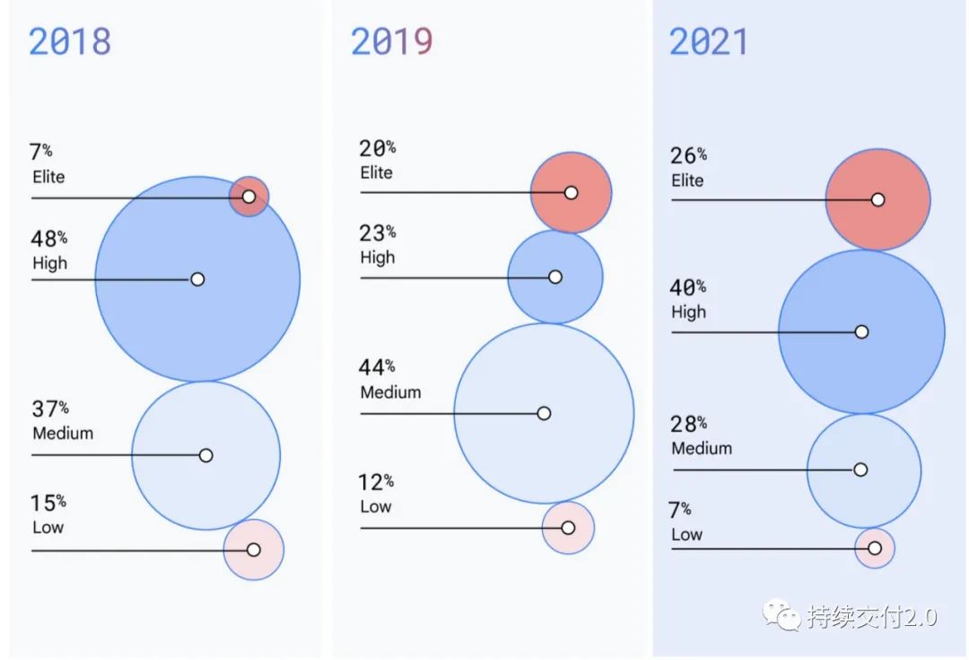 在我们的研究中,精英绩效团队现在占全部团队的26%,而且生产变更的交付周期也缩短了。行业持续加速,团队看到,这么做会得到有益的好处。