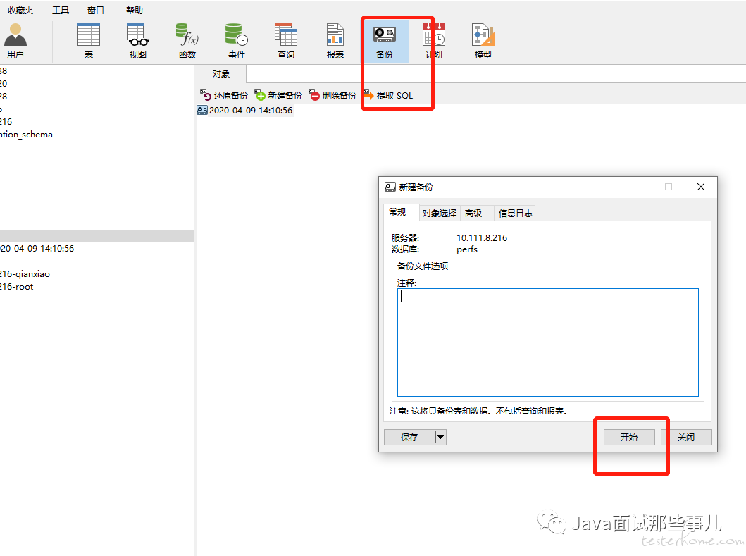4、开始进行还原 第一次还原后发现还原后数据库表建成功了,但是表里面没有数据。