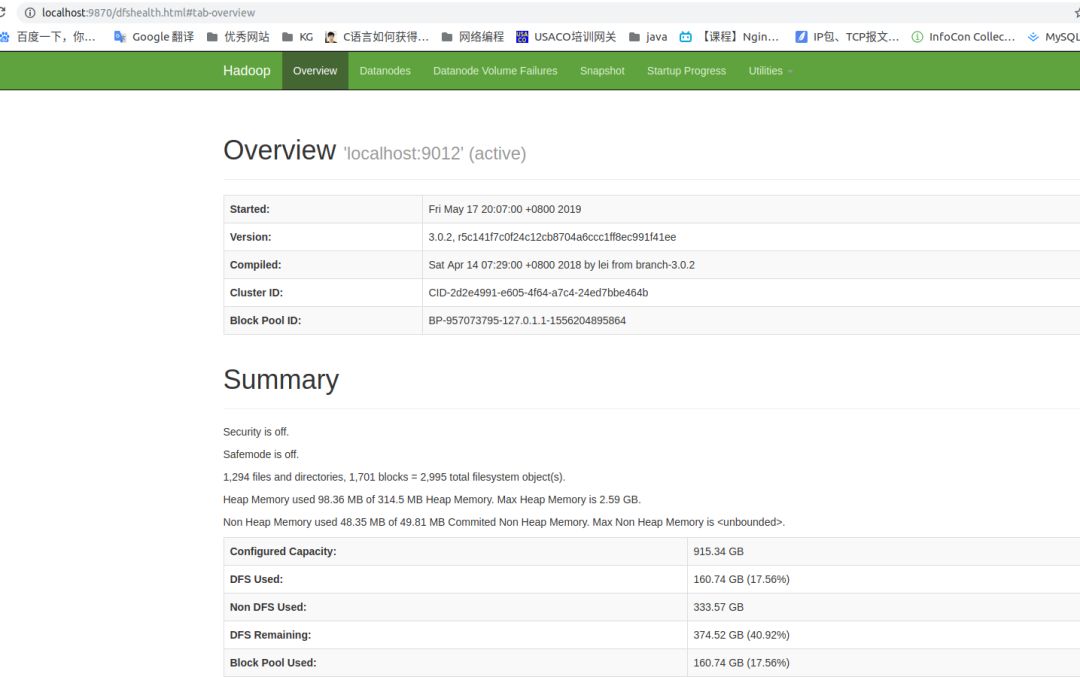 由于hadoop3.x版本与2.x版本监听端口不一样,所以如果还是原先的50070便访问不到相关信息,不知道上述9870或者9864,没关系,可以通过下面命令查看!