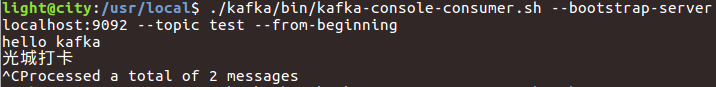 "test", //这个 kafka topic 需要和上面的工具类的 topic 一致