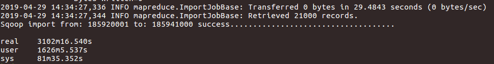 耗时:1874188毫秒=1874.188s秒,大约31分钟。