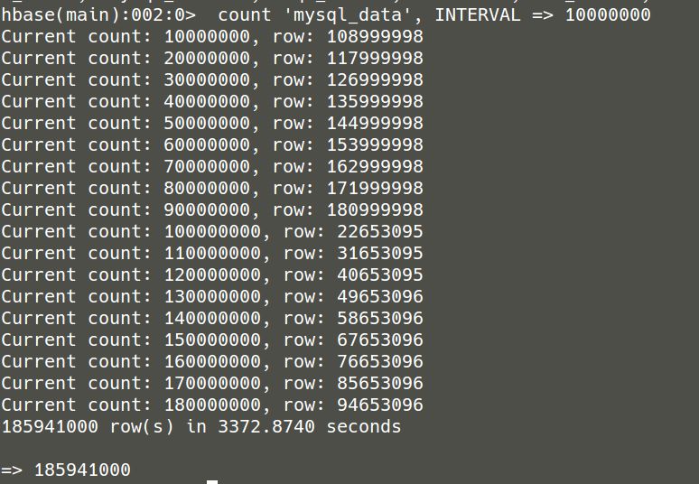 可以看到Hbase查询时间为3956秒大约1小时多一点。