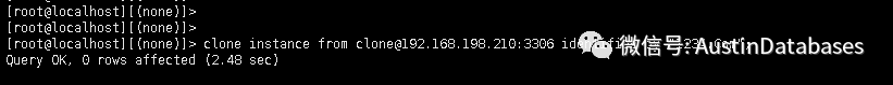 clone instance from clone@192.168.198.210:3306 identified by "1234.Com";