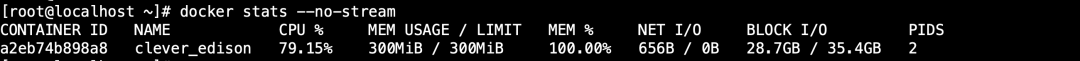[root@localhost ~]# docker run --rm -it --memory 300M --memory-swap 320M polinux/stress stress --vm 1 --vm-bytes 310M