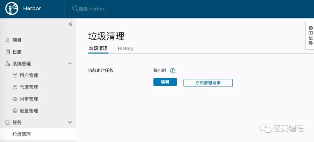 在新版Harbor中,镜像清理工作不再像老版本中那样繁琐,在WEB控制台可通过图形化界面即可进行配置。清理周期根据实际情况选择小时、天等维度。