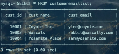 现在,可以像使用其他表一样使用视图customeremaillist。