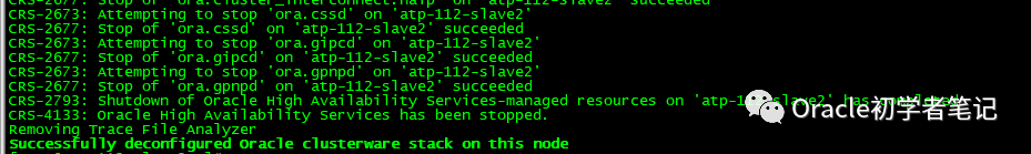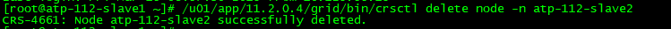 /u01/app/11.2.0.4/grid/bin/crsctl delete node -n atp-112-slave2