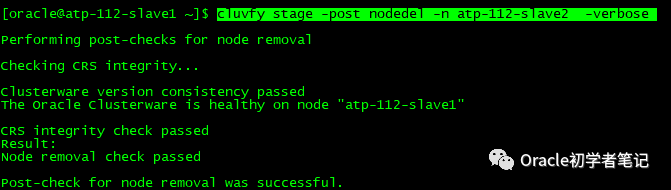 cluvfy stage -post nodedel -n atp-112-slave2 -verbose
