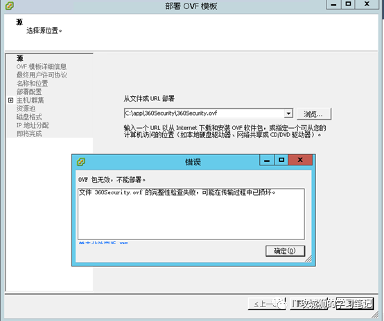 今天要恢复一个之前备份的虚拟机,测试部署OVF时报错如下图