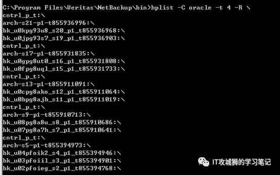 Bplist –C oracle –t 4 –R \ 查看ORACLE客户端的备份集
