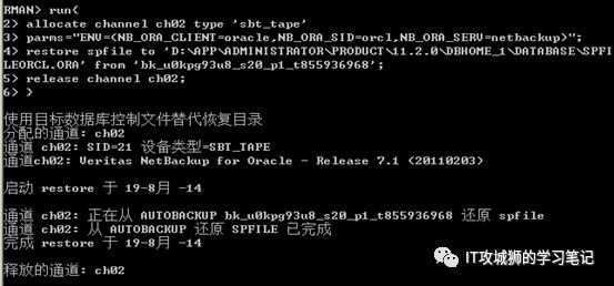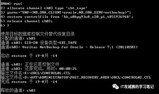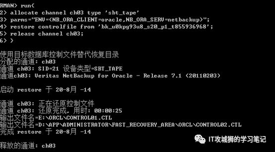 重新使用RMAN登陆数据库,然后执行恢复CONTROLFILE命令