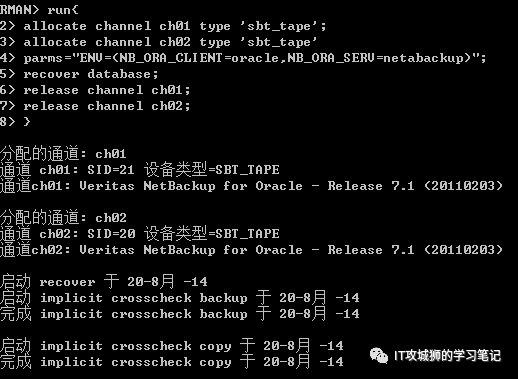 使用rman 登陆数据库,然后启动数据库。执行恢复命令