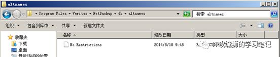 1、在备份服务器NBU的安装目录/db/altnames下创建No.Restrictions文件