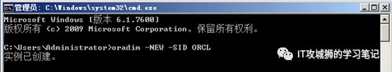 2、在ORACLETEST上创建实例服务,在命令窗口输入oradim -NEW -SID ORCL